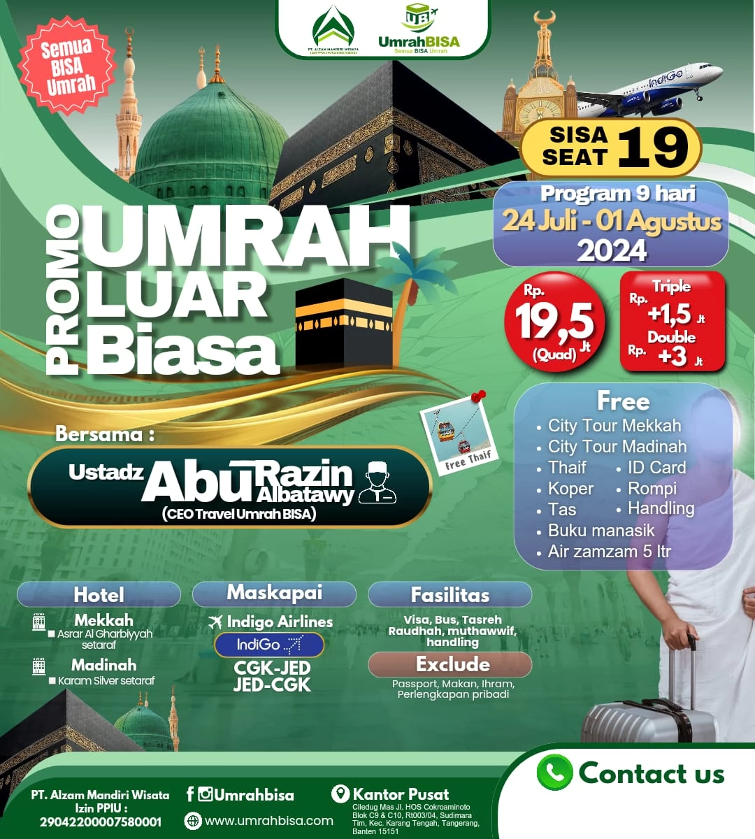 Paket promo dan regular dari Travel Al Zam menjadi pilihan favorit bagi mereka yang mengutamakan nilai terbaik dan kualitas dalam pengalaman umroh mereka