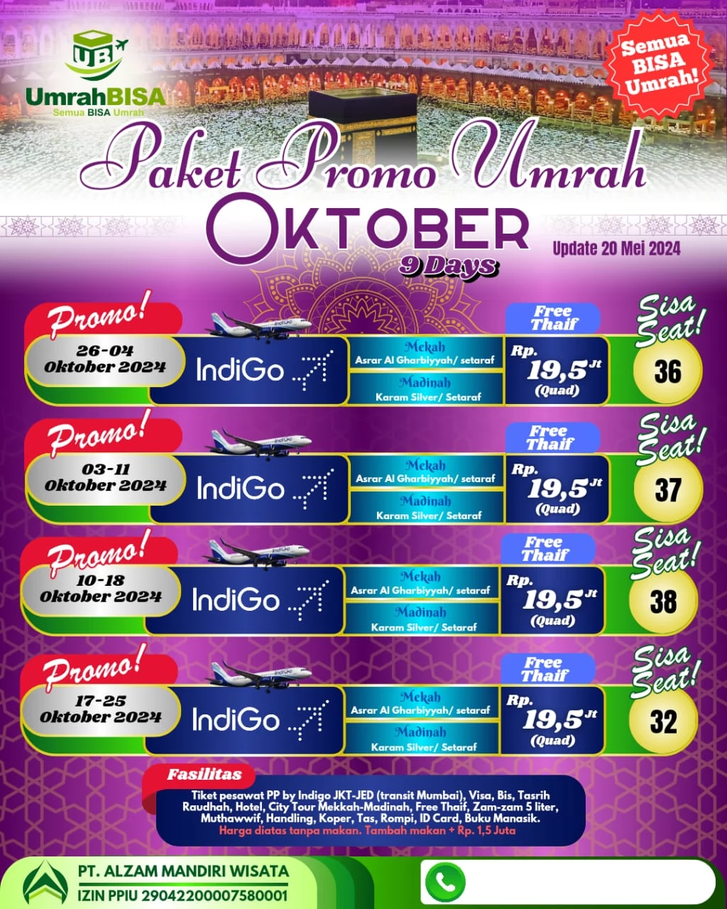 Travel Al Zam menawarkan berbagai pilihan paket umroh yang dapat disesuaikan dengan kebutuhan dan anggaran masyarakat Indonesia