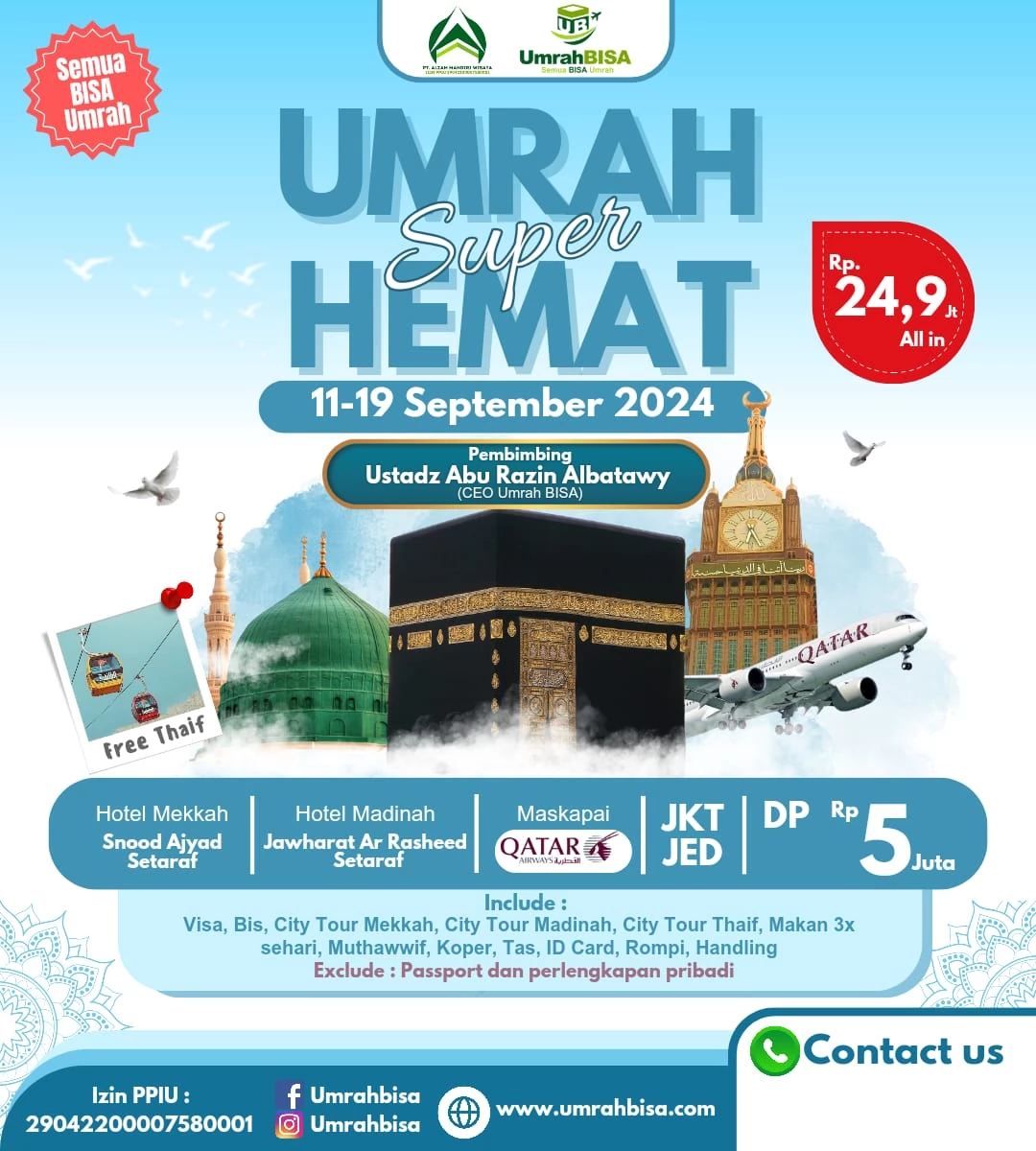 Travel Al Zam menghadirkan biaya umroh yang bersaing, mulai dari 16.5 juta hingga 35 juta, memungkinkan semua kalangan masyarakat untuk menjalani ibadah umroh dengan nyaman dan terjangkau, tanpa mengurangi kualitas dan layanan yang diberikan.